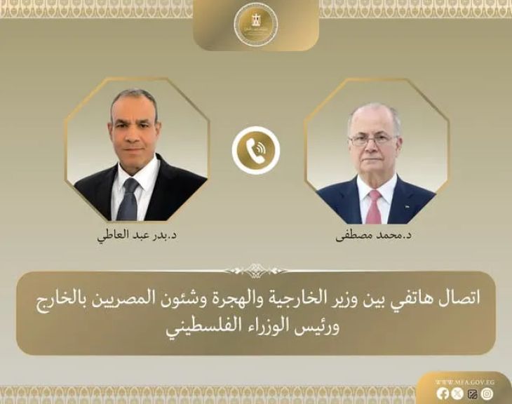 جرى اتصال هاتفي يوم الجمعة ١٧ أكتوبر بين د. بدر عبد العاطي وزير الخارجية والهجرة وشئون المصريين بالخارج ود. محمد مصطفى رئيس الوزراء الفلسطيني، وذلك لتناول التحضيرات الجارية لمؤتمر التعافي المبكر وإعادة الإعمار والتنمية في غزة المقرر عقده في القاهرة خلال النصف الثاني من نوفمبر.