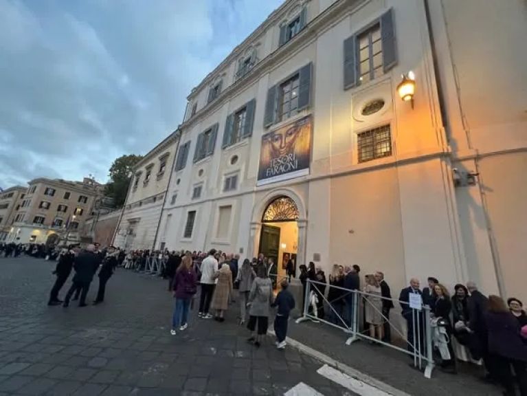 يشهد معرض "كنوز الفراعنة"، المُقام حالياً بقاعة Scuderie del Quirinale بالعاصمة الإيطالية روما، إقبالًا جماهيريًا واسعًا منذ أن قام السيد سيرجيو ماتاريلا رئيس جمهورية إيطاليا بافتتاحه رسمياً قبل يومين، والسيد شريف فتحي وزير السياحة والآثار المصري، والسيد أليساندرو جولي وزير الثقافة الإيطالي، د. محمد إسماعيل خالد الأمين العام للمجلس الأعلى للآثار، حيث توافدت آلاف الزائرين الذين اصطفوا في طوابير طويلة منذ الساعات الأولى من الصباح للاستمتاع بروائع الحضارة المصرية القديمة.