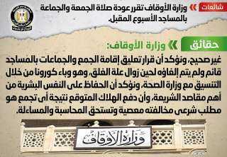 الحكومة تنفي شائعة عودة صلاة الجمعة والجماعة بالمساجد الأسبوع المقبل