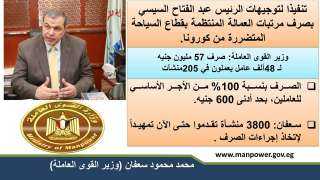 وزير القوى العاملة: صرف 57 مليون جنيه لـ 48 ألف عامل يعملون...