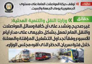 تعرف علي حقيقة توقف حركة المواصلات العامة على مستوى الجمهورية يومي الجمعة...