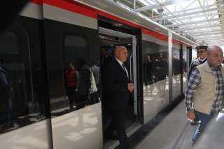 وزير النقل يتفقد انتظام العمل بمحطة عدلي منصور ويستقل أحد قطارات LRT...