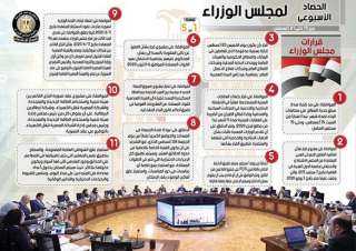 بالإنفو جراف .. الحصاد الأسبوعي لمجلس الوزراء خلال الفترة من 8 حتى...