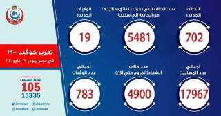 الصحة: تسجيل 702 حالة إيجابية جديدة لـ كورونا.. و 19 حالة وفاة