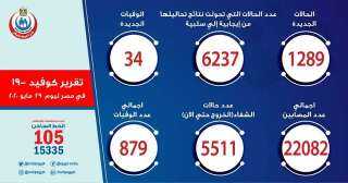 الصحة: تسجيل 1289 حالة إيجابية جديدة لفيروس كورونا.. و 34 حالة وفاة