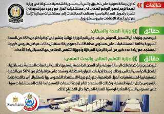 الصحة: ارتفاع حالات الشفاء من مصابي فيروس كورونا إلى 98713 وخروجهم من...