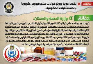 عجز بأدوية البروتوكولات العلاجية لفيروس كورونا بالمستشفيات الحكومية .. شائعة